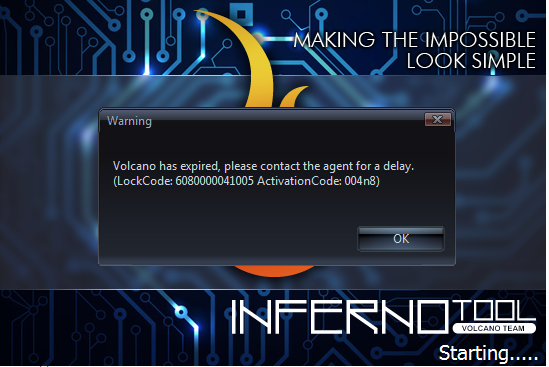 2.3 when you will active inferno Software for “Inferno Key” or “VolcanoBox” from “Serial numbers” you don’t have to write complete error code. You just write “608xxxxxx for volcanobox” and “308xxxxxx for inferno key”